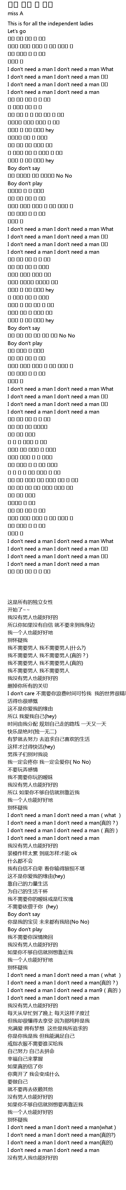 | [00:24.509] | I don't need a man I don't need a man 진짜 |