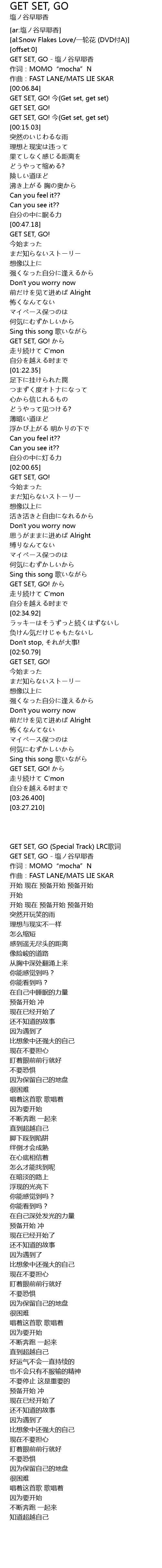 | [00:00.58] | GET SET, GO - 塩ノ谷早耶香 |