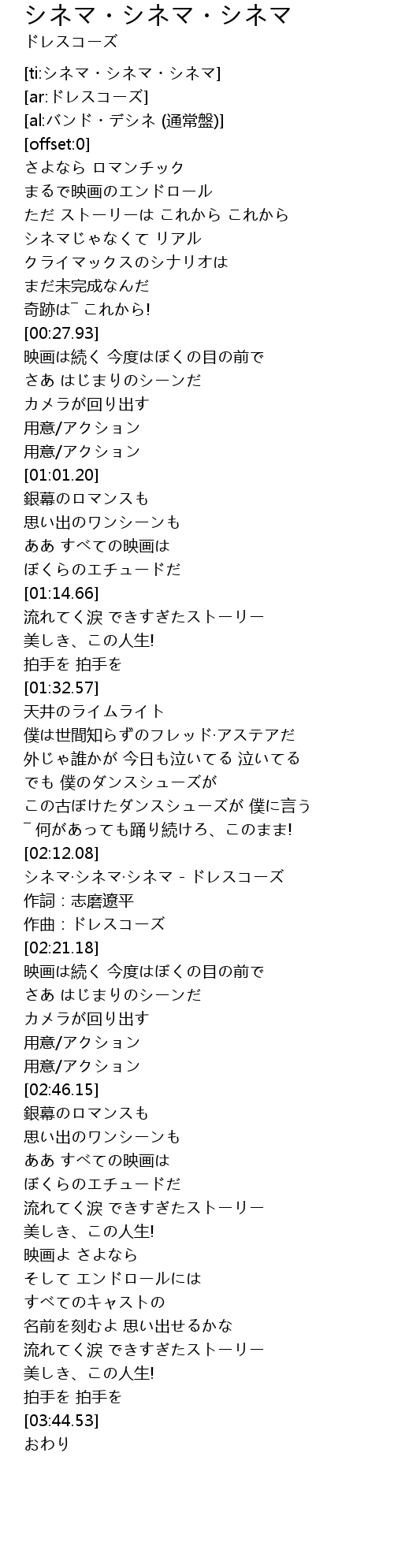 | [02:12.85] | シネマ·シネマ·シネマ - ドレスコーズ |