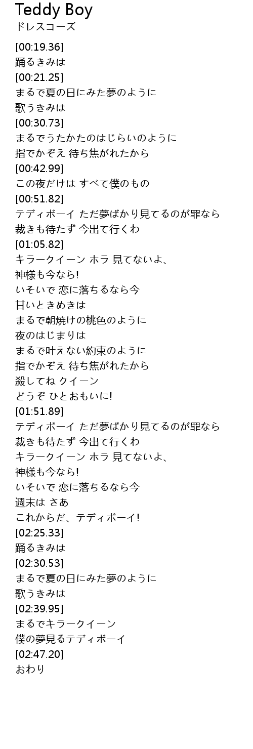 テディボーイ ただ夢ばかり見てるのが罪なら |