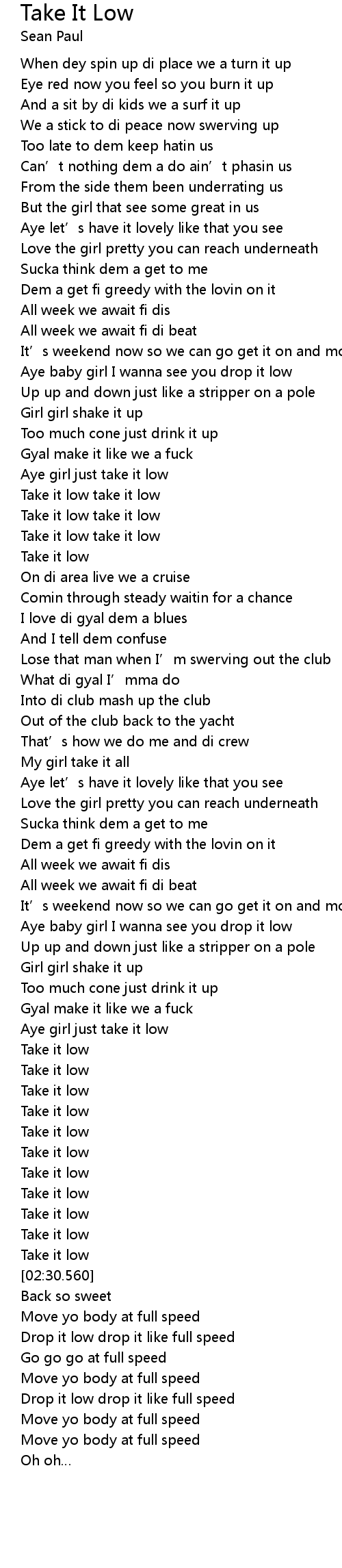 | [02:41.790] | Drop it low drop it like full speed |