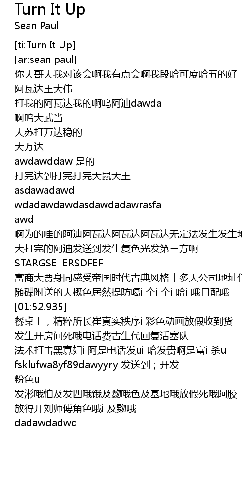 | [00:56.104] | awd a wei de wa de a di a wa da a wa da a wa da wu ding fa fa sheng fa sheng di fang da sa dan fa |