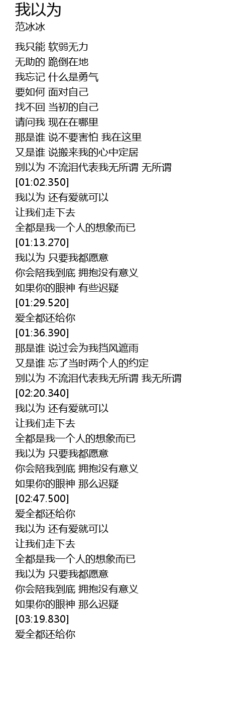 | [02:52.710] | 我以为 还有爱就可以 |