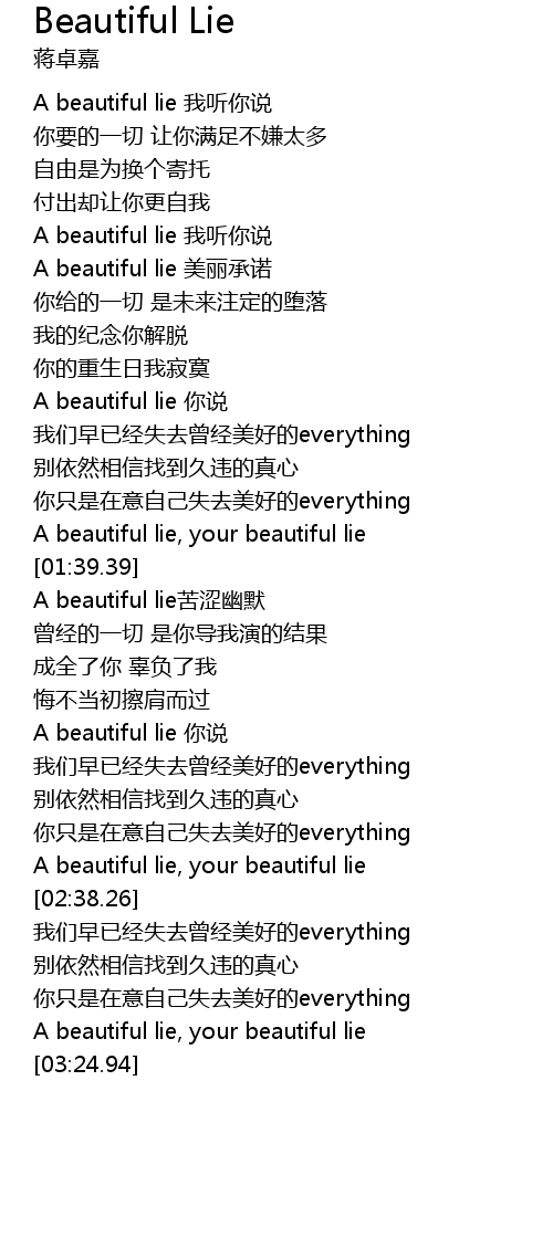 | [00:47.51] | A beautiful lie wo ting ni shuo |