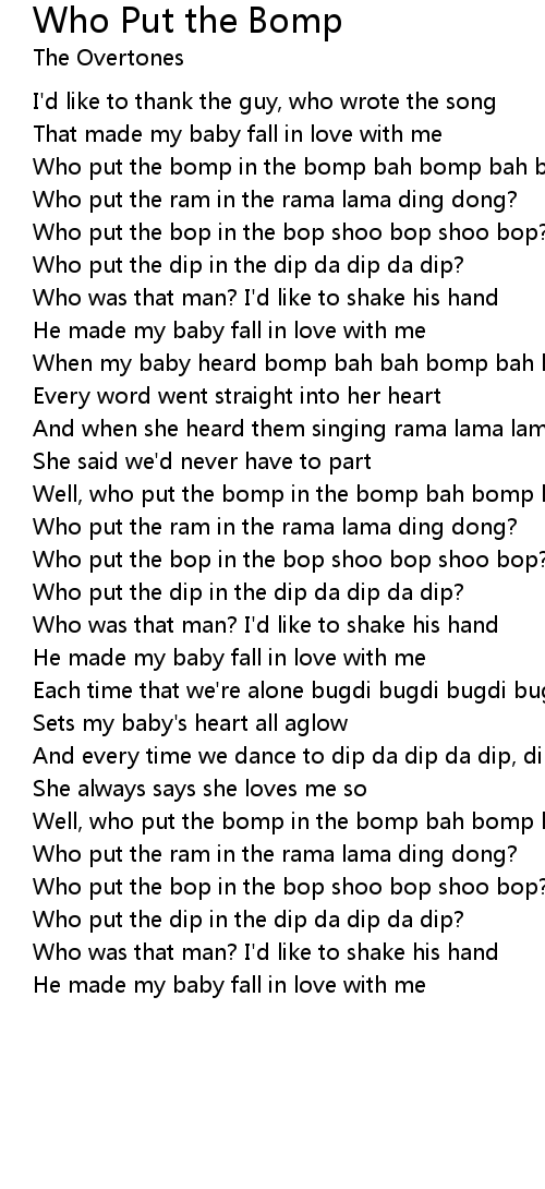 Well, who put the bomp in the bomp bah bomp bah bomp? |