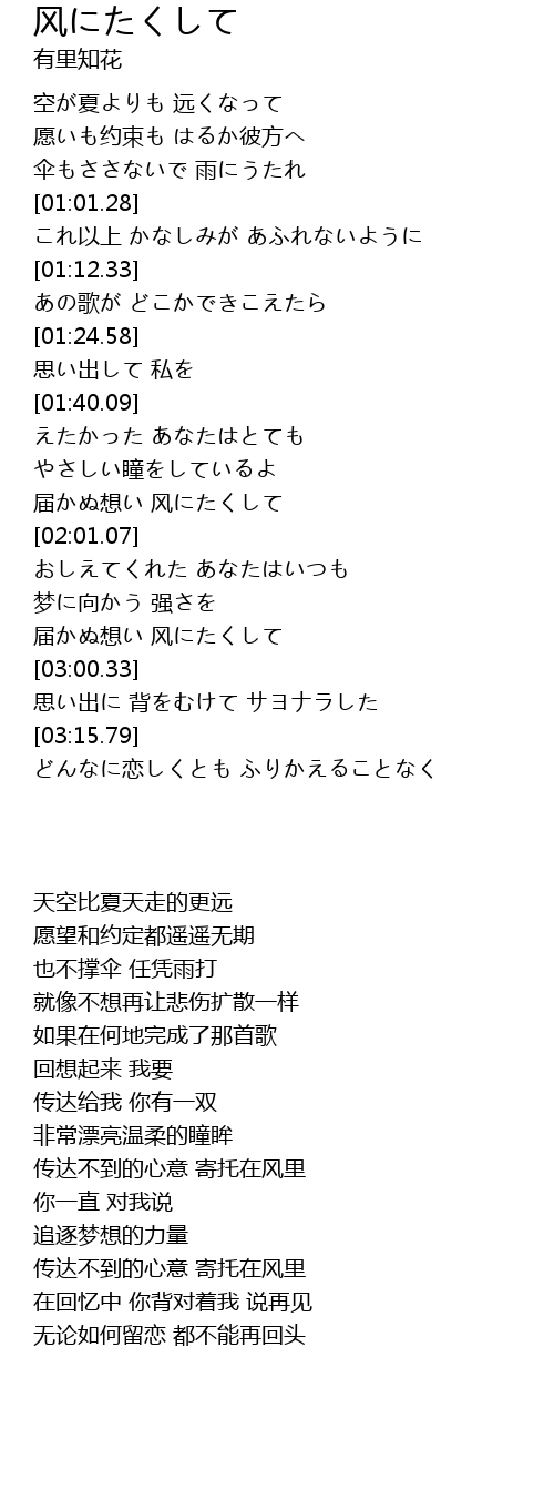 | 歌曲 | 风にたくして |