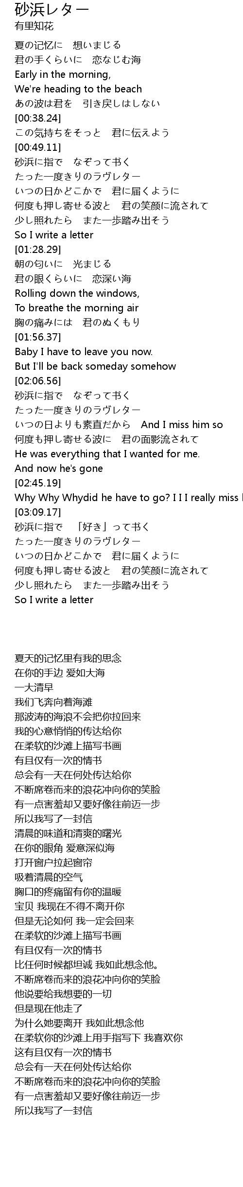 | [00:49.58] | 砂浜に指で なぞって书く |