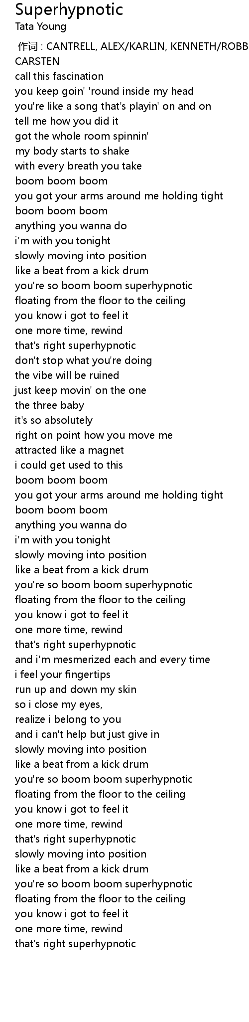 | [00:49.060] | you' re so boom boom superhypnotic |