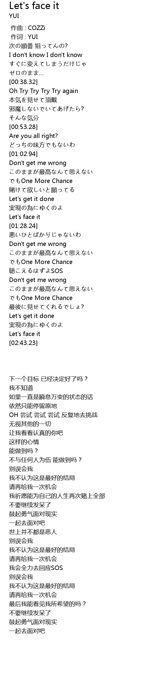 | [02:41.80] | Let's face it |