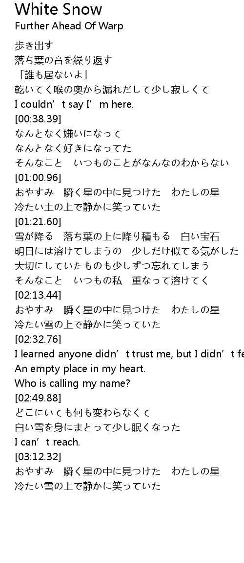 | [03:23.38] | 冷たい雪の上で静かに笑っていた |