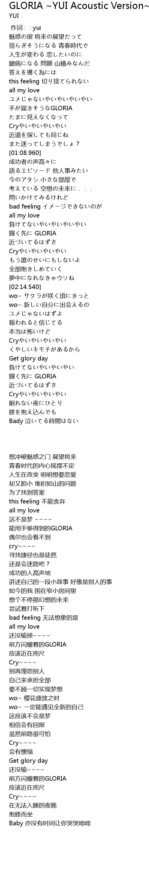 | [02:51.770] | 前方闪耀着的GLORIA |