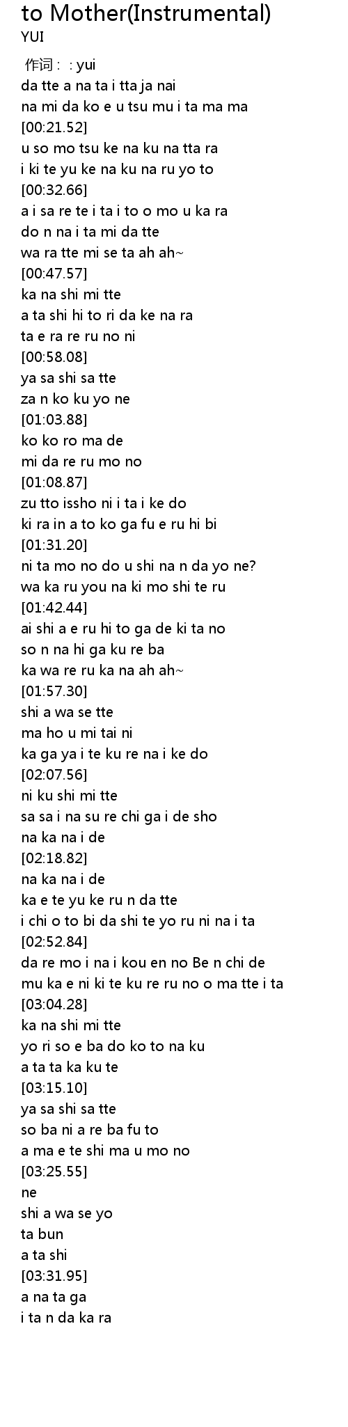 | [00:34.01] | a i sa re te i ta i to o mo u ka ra |