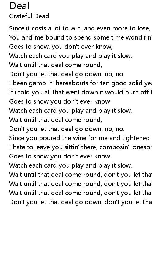 Wait until that deal come round, don't you let that deal go down. |