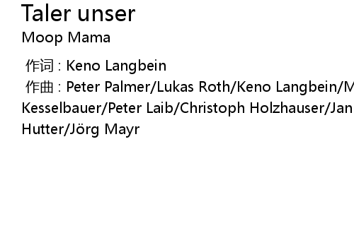 | [00:00.000] | zuò qǔ : Peter Palmer Lukas Roth Keno Langbein Menzel Mutzke Marcus Kesselbauer Peter Laib Christoph Holzhauser Jan R ler Johannes Gei Martin Hutter J rg Mayr |
