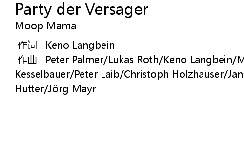 | [00:00.000] | 作曲 : Peter Palmer/Lukas Roth/Keno Langbein/Menzel Mutzke/Marcus Kesselbauer/Peter Laib/Christoph Holzhauser/Jan Rößler/Johannes Geiß/Martin Hutter/Jörg Mayr |