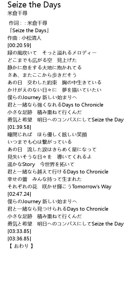 | [00:01.59] | 「Seize the Days」 |