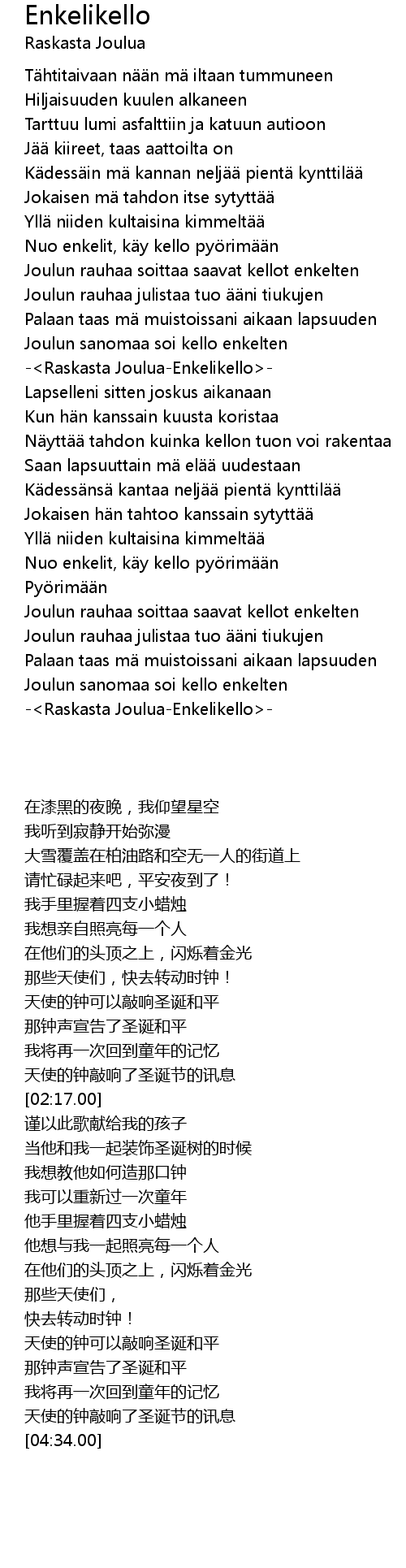 | [02:17.00] | Raskasta JouluaEnkelikello |