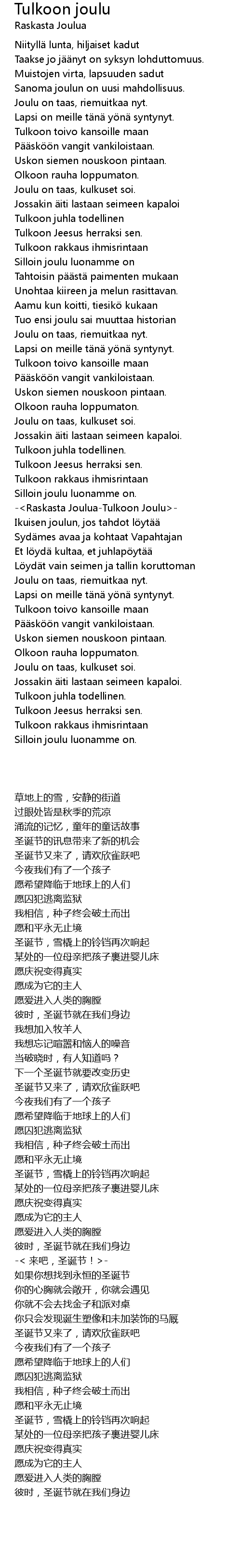 | [02:55.20] | Raskasta JouluaTulkoon Joulu |