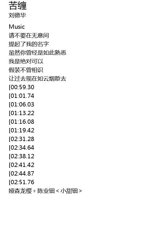 | [03:28.84][02:34.64][01:29.80] | 我不会苦缠着你 |