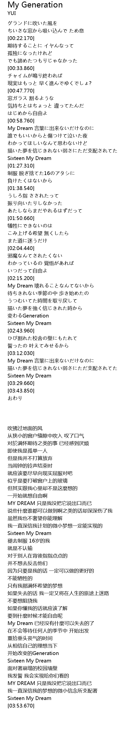 | [03:26.780] | Sixteen My Dream |