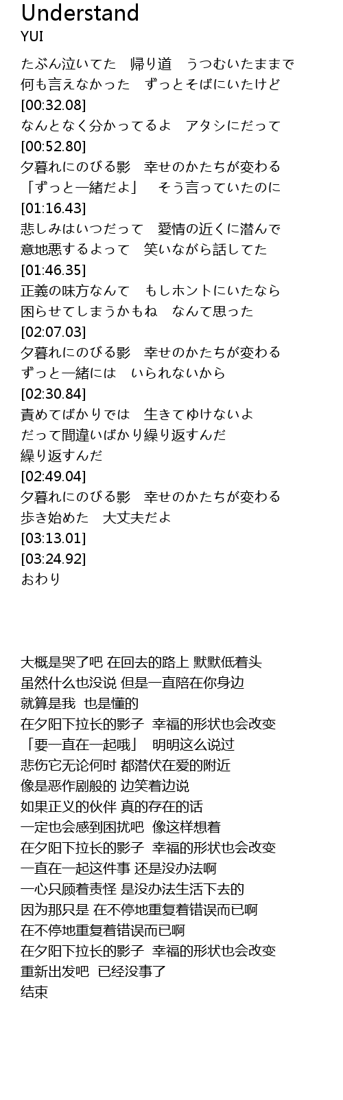 | [00:22.83] | 何も言えなかった ずっとそばにいたけど |