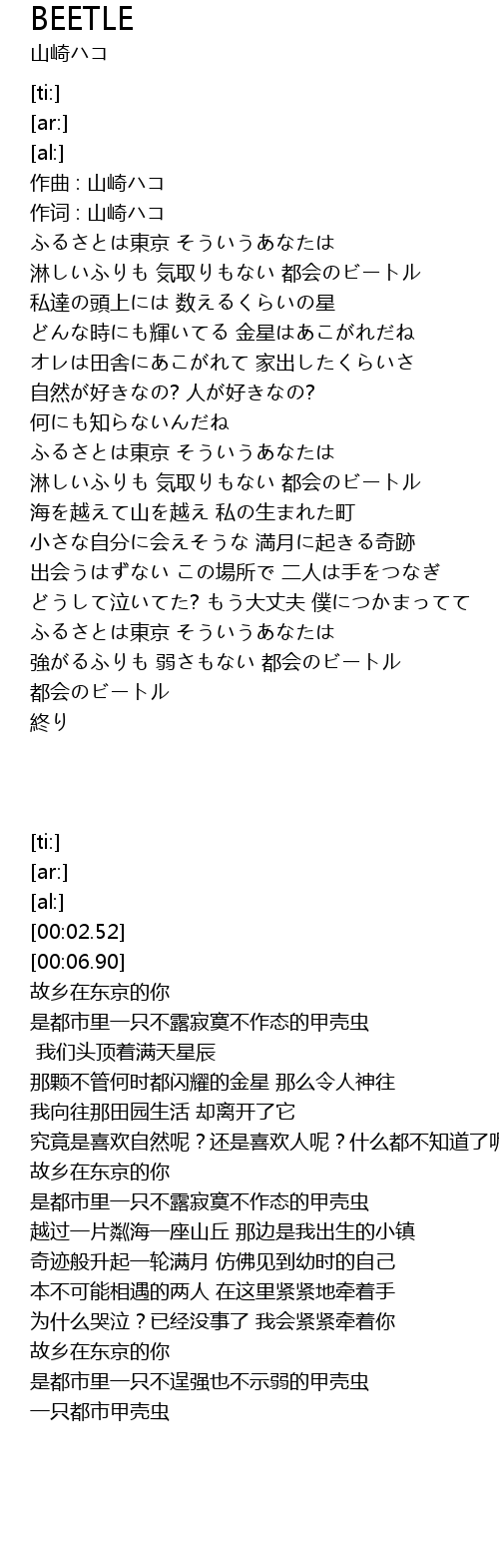 | [00:02.52] | 作曲 : 山崎ハコ |