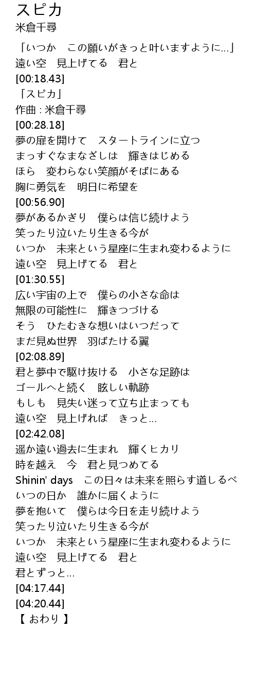 | [02:19.37] | ゴールへと続く 眩しい軌跡 |