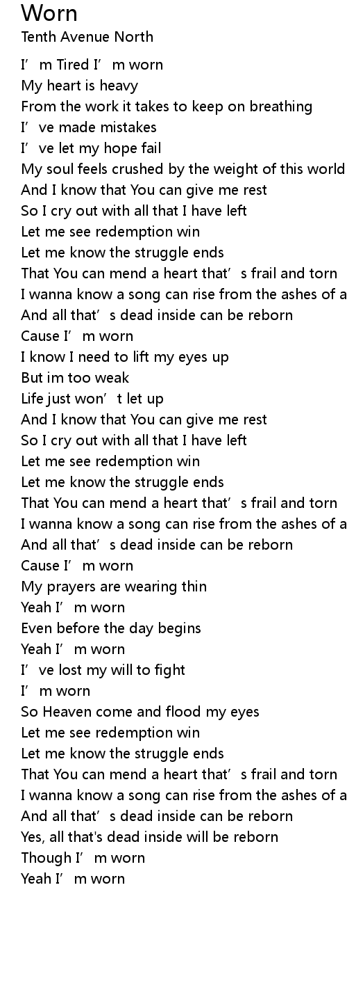 | [02:40.11] | Cause I’m worn |