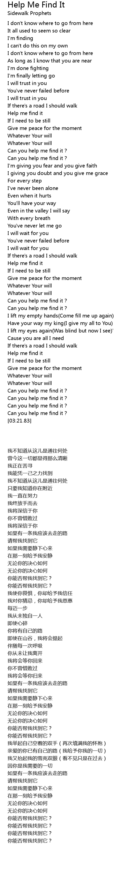 | [03:17.02] | 你能否帮我找到它? |