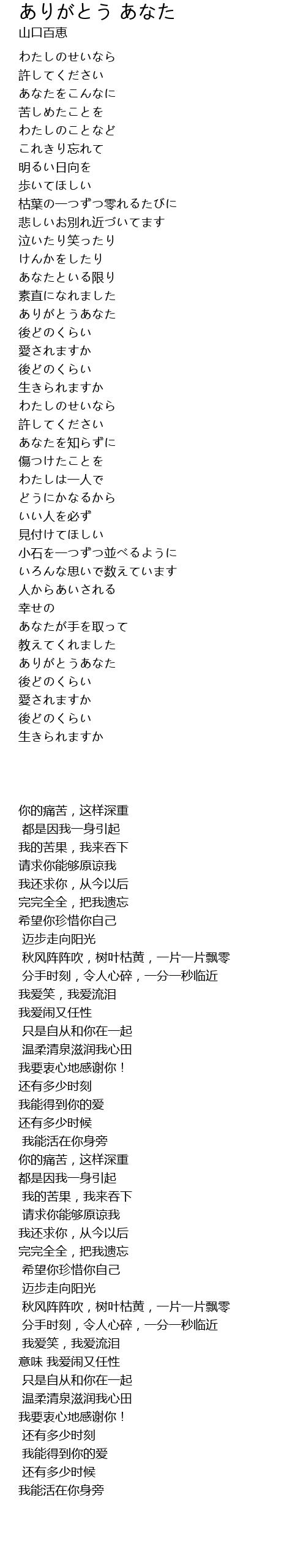 | [01:20.180] | ありがとうあなた |