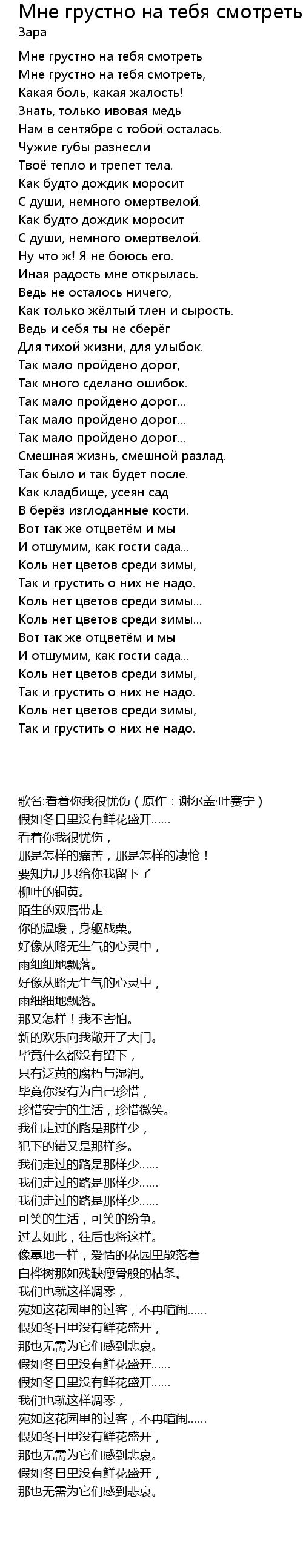 | [00:00.000] | 歌名:看着你我很忧伤(原作:谢尔盖·叶赛宁) |