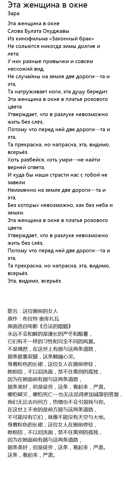 | 歌曲 | Эта женщина в окне |