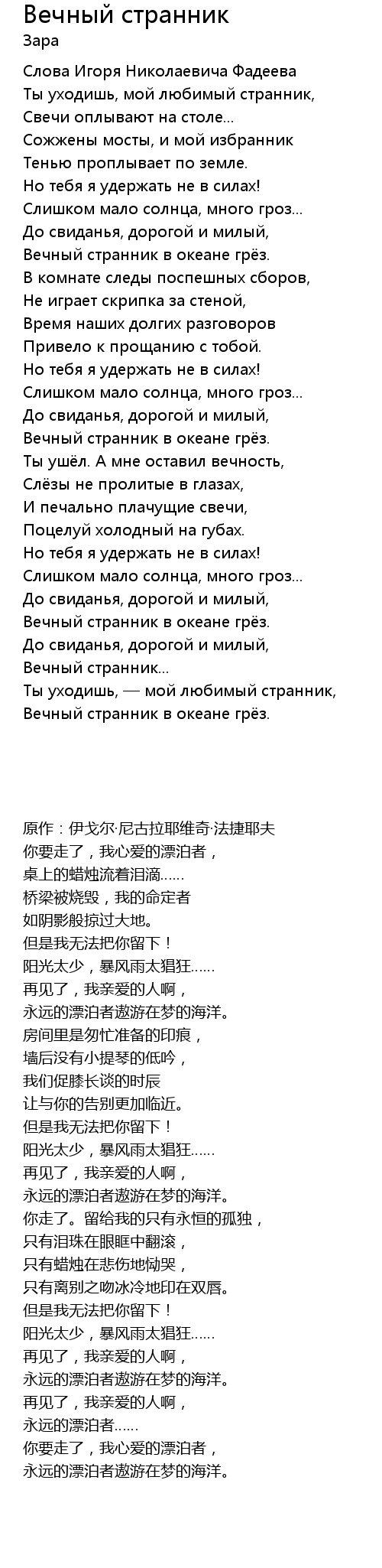 | [03:12.022] | Ты уходишь, — мой любимый странник, |