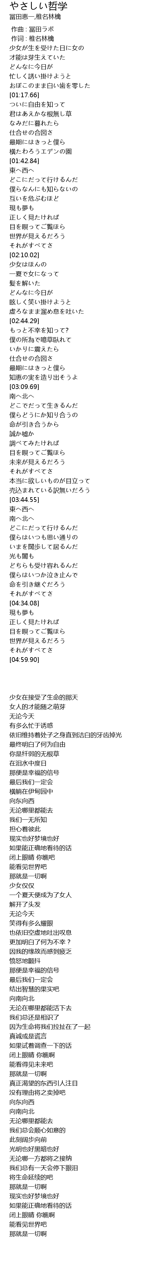 | [00:01.00] | 作词 : 椎名林檎 |