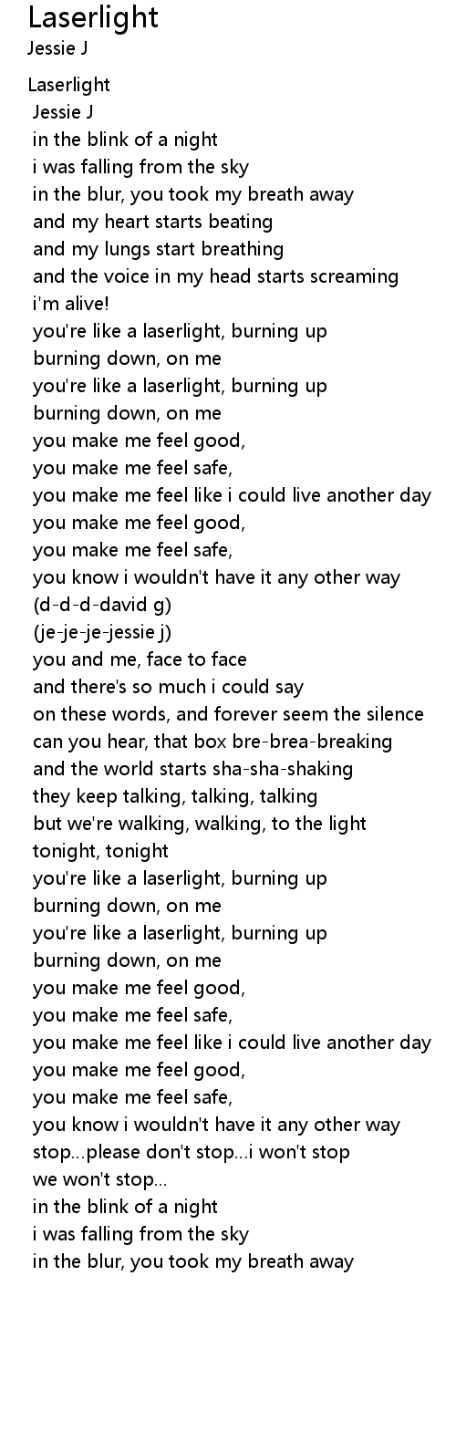 | you're like a laserlight, burning up | |