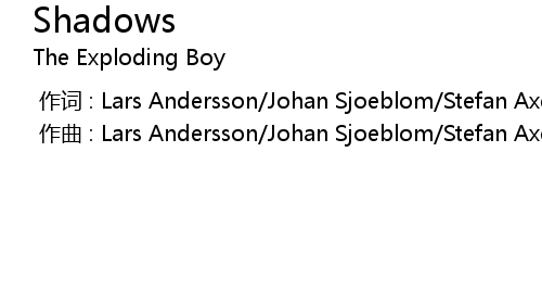 | [00:00.000] | 作词 : Lars Andersson/Johan Sjoeblom/Stefan Axell/Nicklas Isgren |