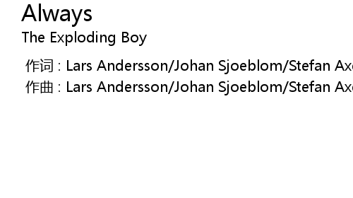 | [00:00.000] | 作词 : Lars Andersson/Johan Sjoeblom/Stefan Axell/Nicklas Isgren |