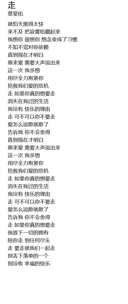 | [01:22.248] | zǒu kě bù kě yǐ nǐ bú yào zǒu |