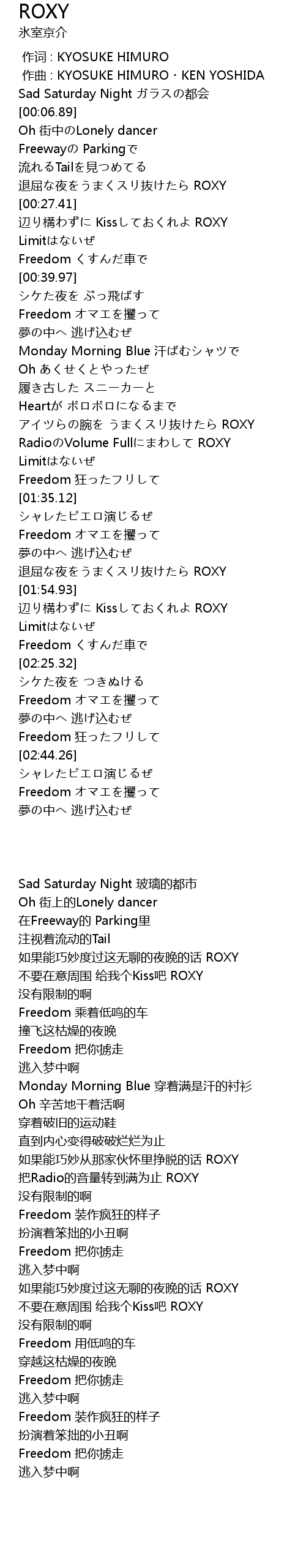 | [02:17.43] | 不要在意周围 给我个Kiss吧 ROXY |