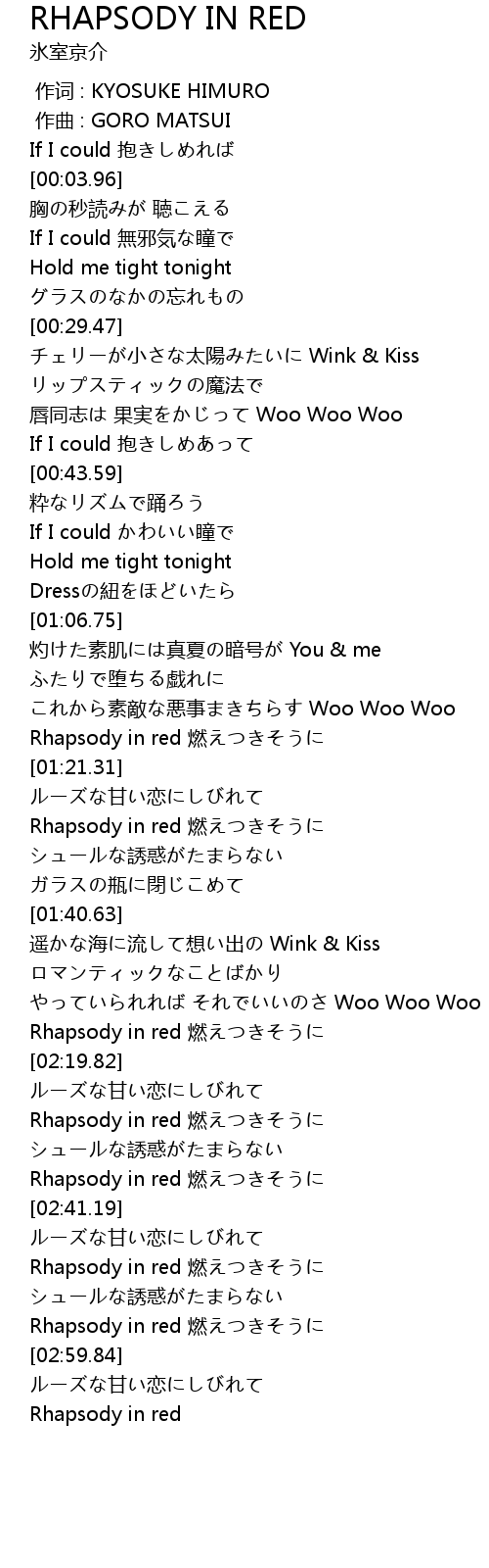 | [02:51.64] | Rhapsody in red 燃えつきそうに |