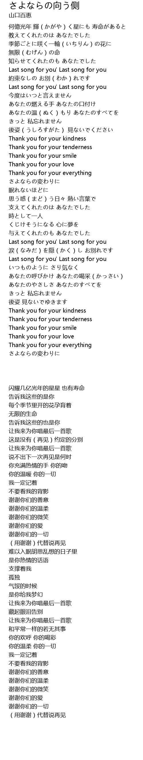 | [04:09.100] | 涙(なみだ)を隠(かく)し お別れです |