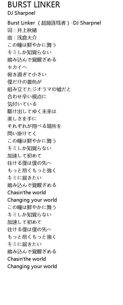 | [00:00.140] | Burst Linker chāo pín lián xiàn zhě DJ Sharpnel |