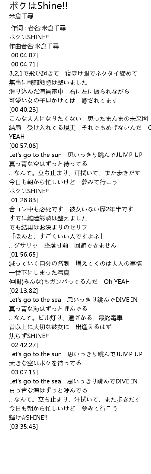 | [00:01.19] | ボクはSHINE!! |
