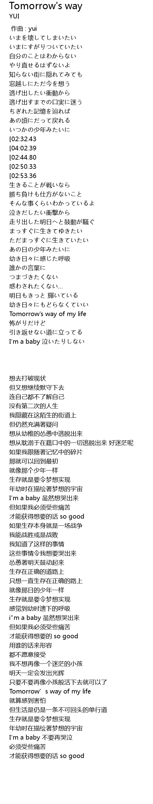 | [01:29.44][02:44.80] | I'm a baby 泣きたくもなる |