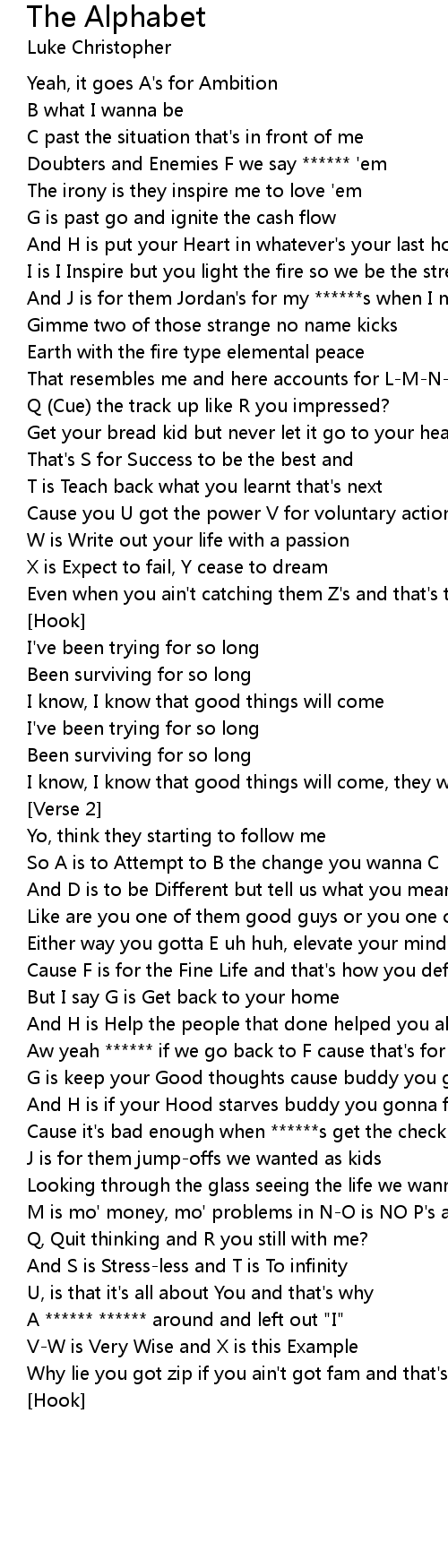 Why lie you got zip if you ain't got fam and that's the alphabet |