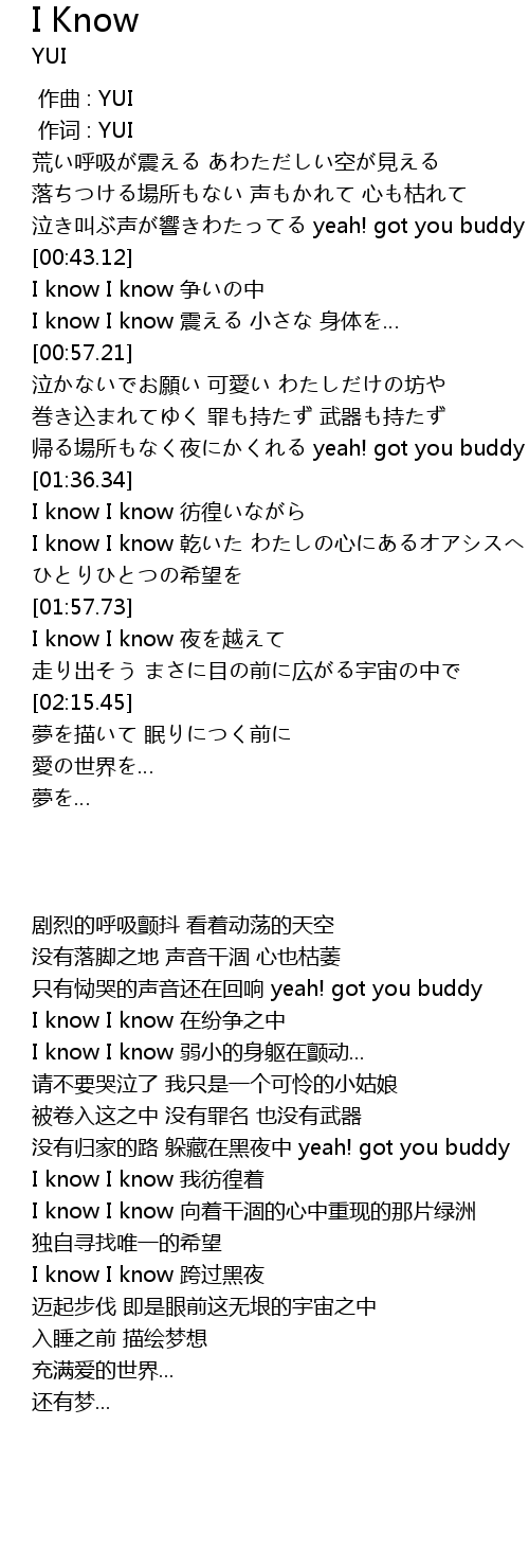 | [00:43.62] | I know I know 争いの中 |