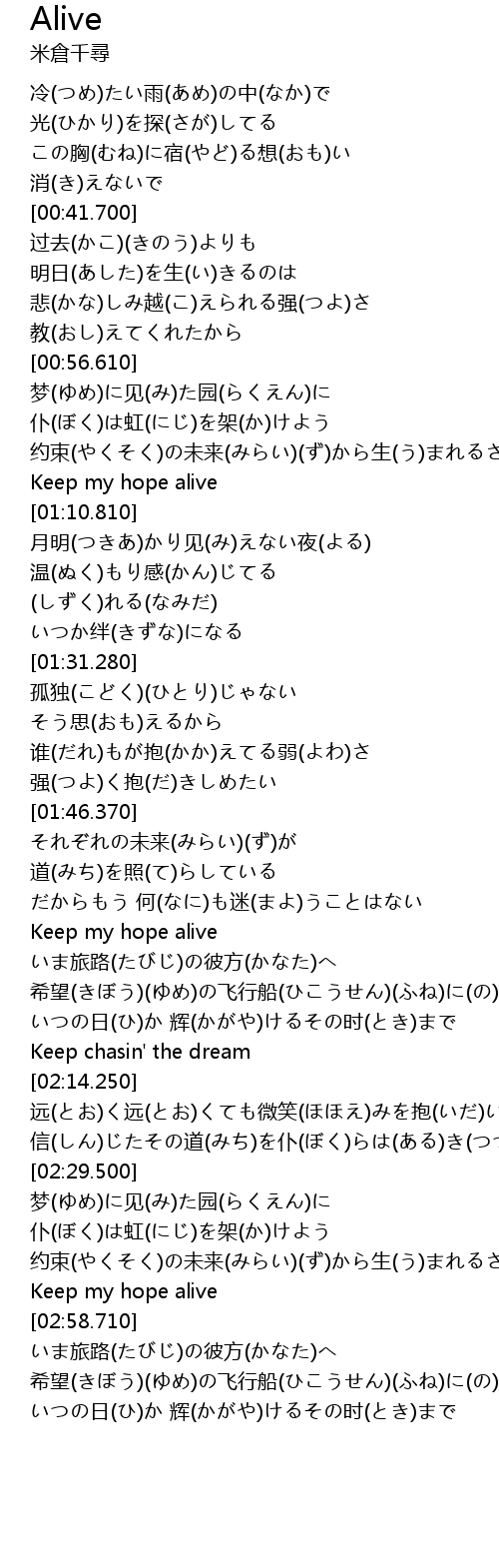 | [00:45.600] | 明日(あした)を生(い)きるのは |
