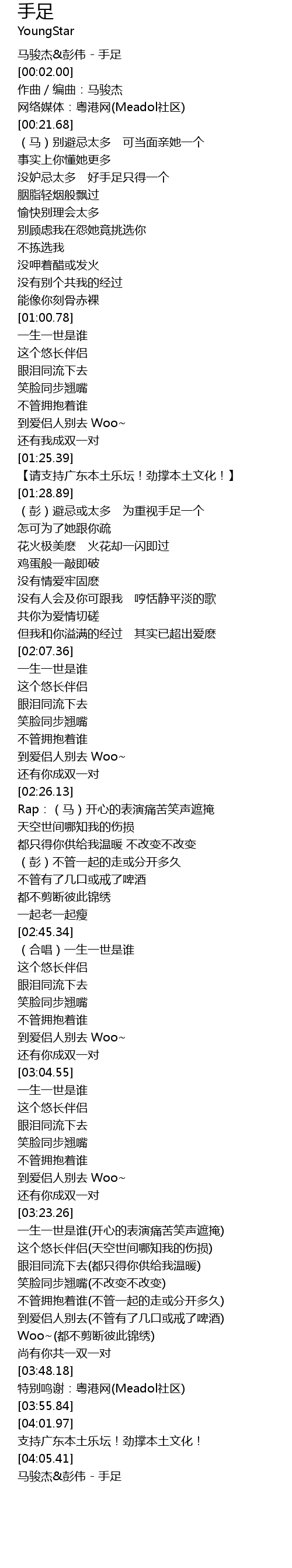 | [04:06.41] | 马骏杰&彭伟 - 手足 |