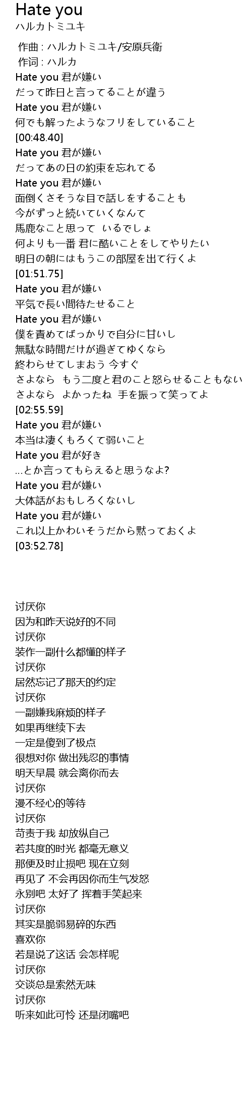 | [01:32.41] | 何よりも一番 君に酷いことをしてやりたい |