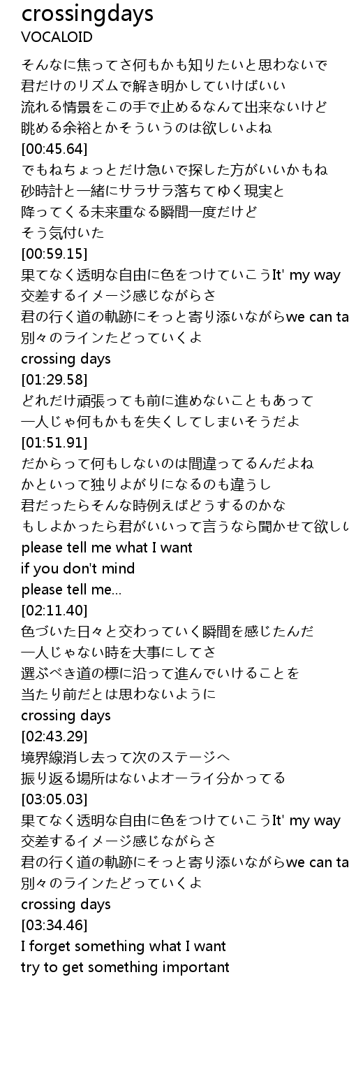 | [02:38.16] | crossing days |